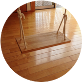 ・木製ブランコとはいっても木なのは座面だけ。ちょっと太めの柔らかいロープ仕様。固定は化粧梁に巻き付けたり、金具止めしたり。強度の保てる場所のみの取付になります。サイズ、価格は要応談で製作いたします。
